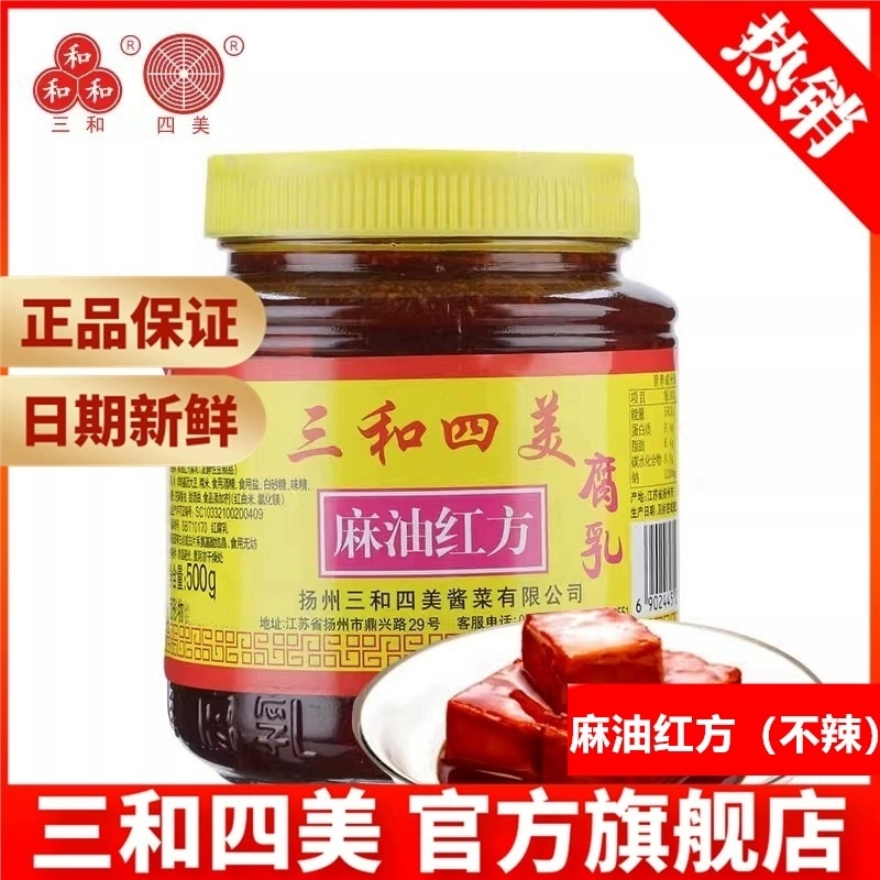 三和四美麻油红方豆腐乳500g 扬州特产拌饭豆腐乳汁调味腐乳小菜
