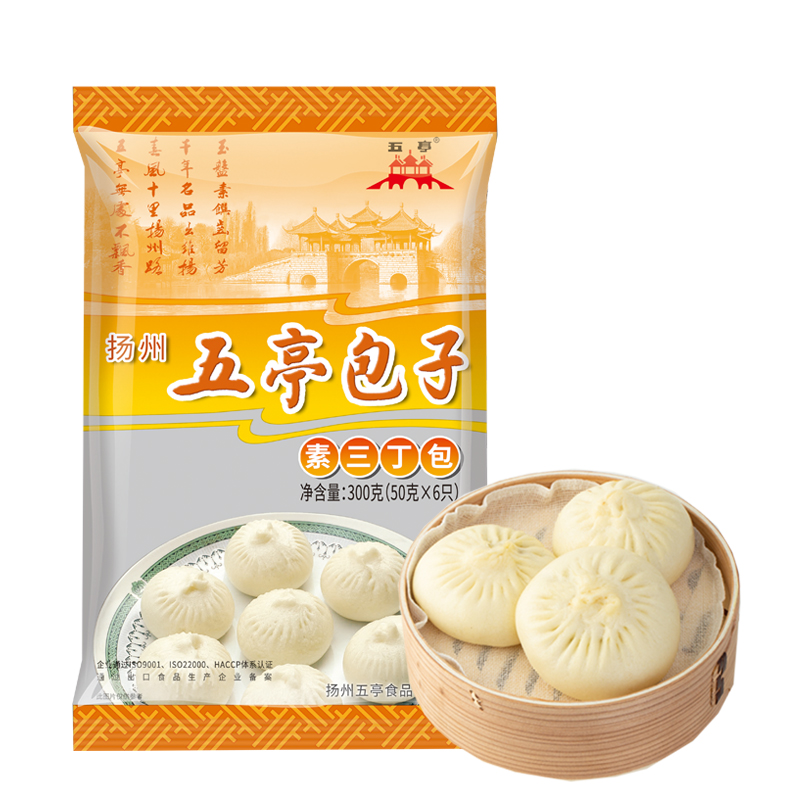 6只 扬州包子特产冷冻包子营养方便早餐50g 五亭 袋 素三丁
