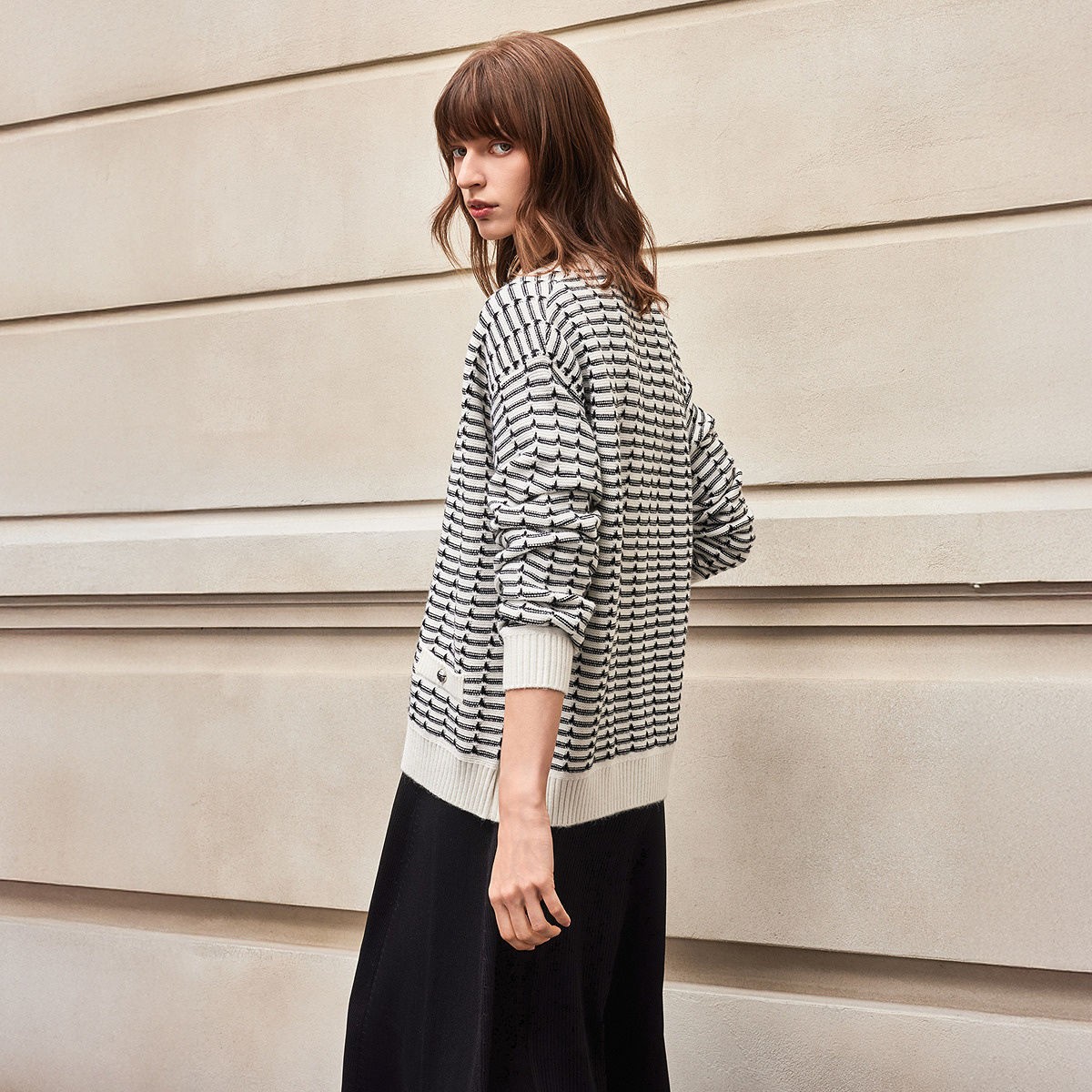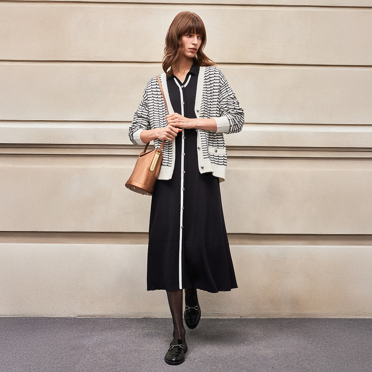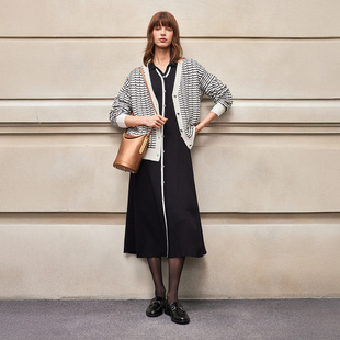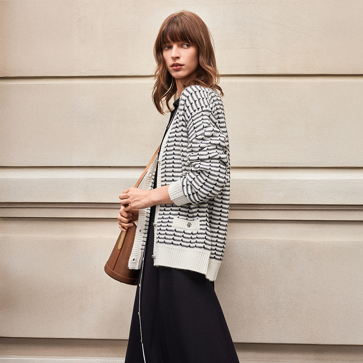 BCBG新款 百搭简约休闲高级金属扣饰线性女士针织上衣外套 早秋时尚