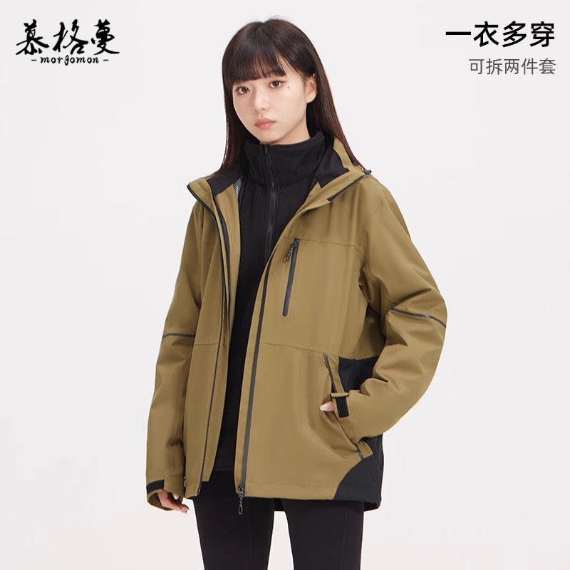 新款 宽松户外登山外套男 软壳冲锋衣女防风防水三合一外套女情侣款