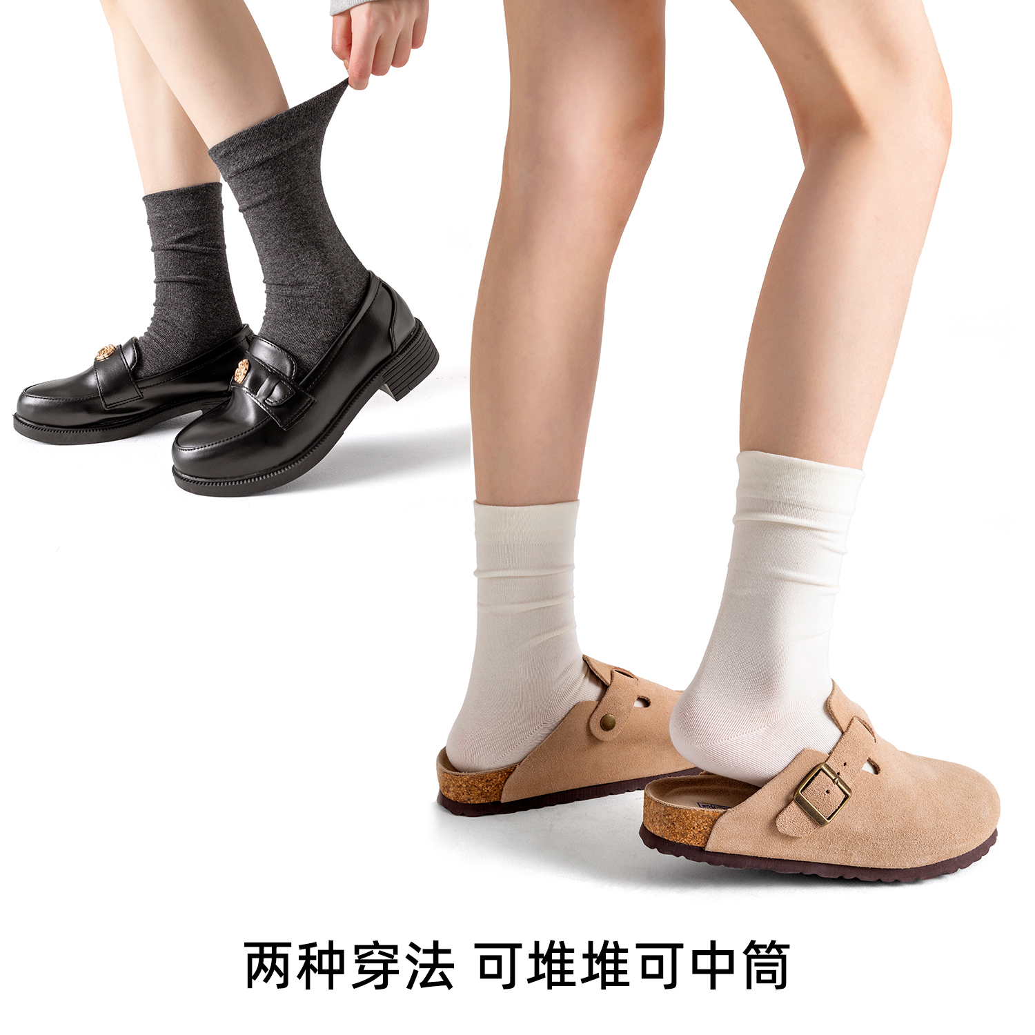 棉伙棉伴海藻袜舒适抗菌防臭男女商务运动纯色裸感中筒袜