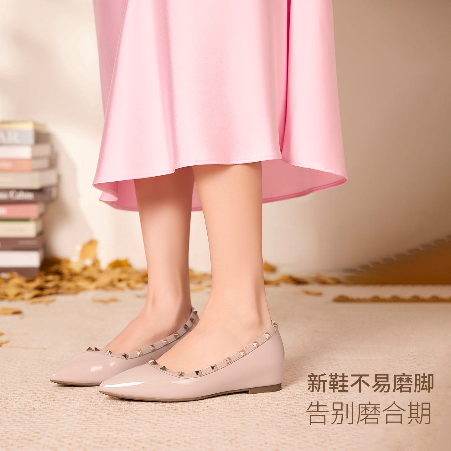 商场新款 百思图25秋季 浅口单鞋 小红鞋 女婚鞋 一脚蹬皮鞋 梦中人