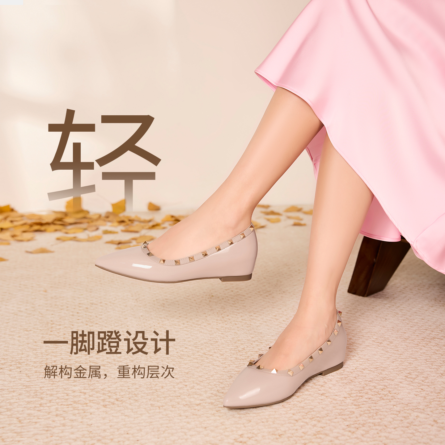 大女主 婚鞋 百思图25秋新款 尖头女浅口单鞋 裸色高跟鞋 双11预售