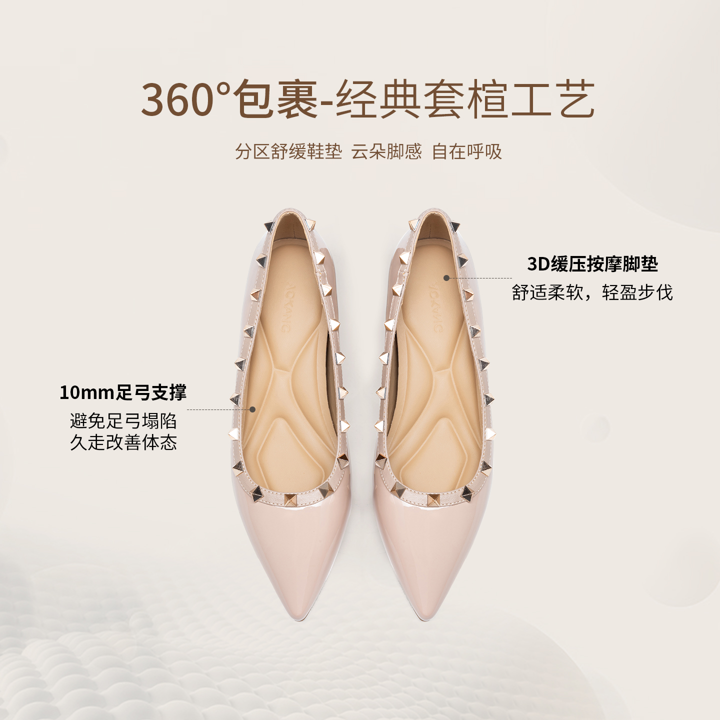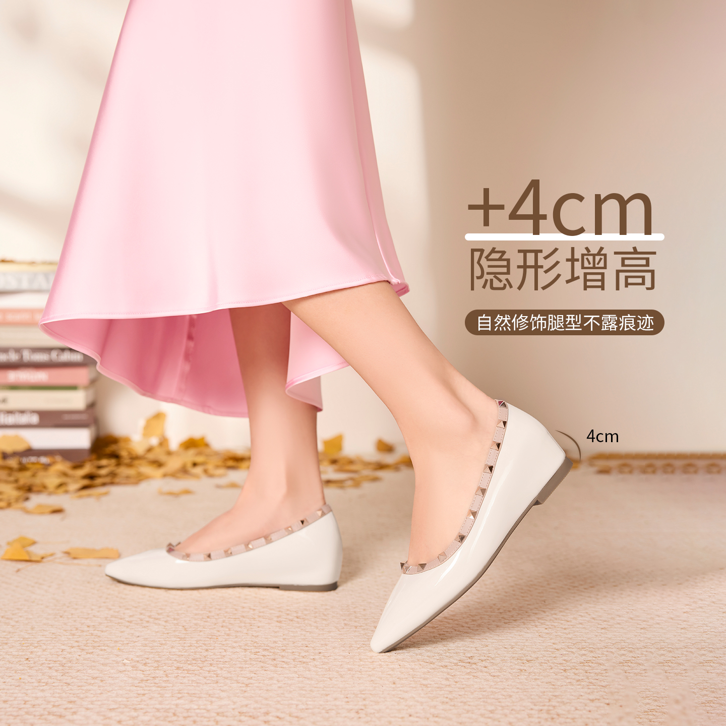 绝美气质通勤平底鞋 小个子内增高裸色方扣浅口单鞋 女2025春夏新款