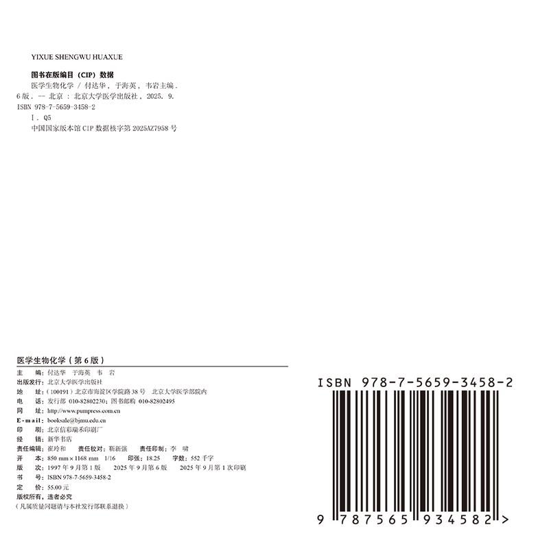 平装 社97875 双元 于海英 韦岩 付达华 十四五卫生高等职业教育专科校院合作 规划教材 北京大学医学出版 医学生物化学 主编 第6版