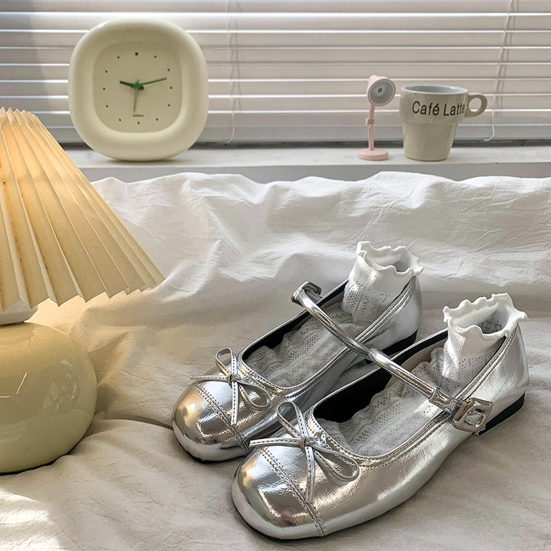 女2025年夏季 小香风玛丽珍鞋 新款 平底浅口单鞋 法式 热风银色晚晚鞋