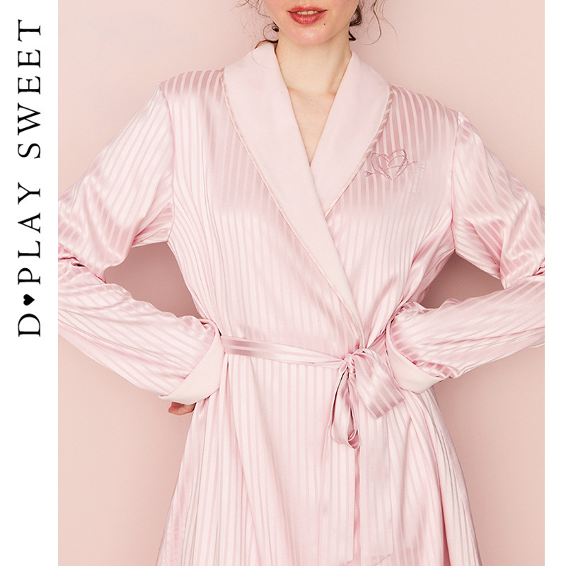 DPLAYSWEET粉色条纹提花长袖 睡袍加绒保暖家居服睡衣2025年秋冬