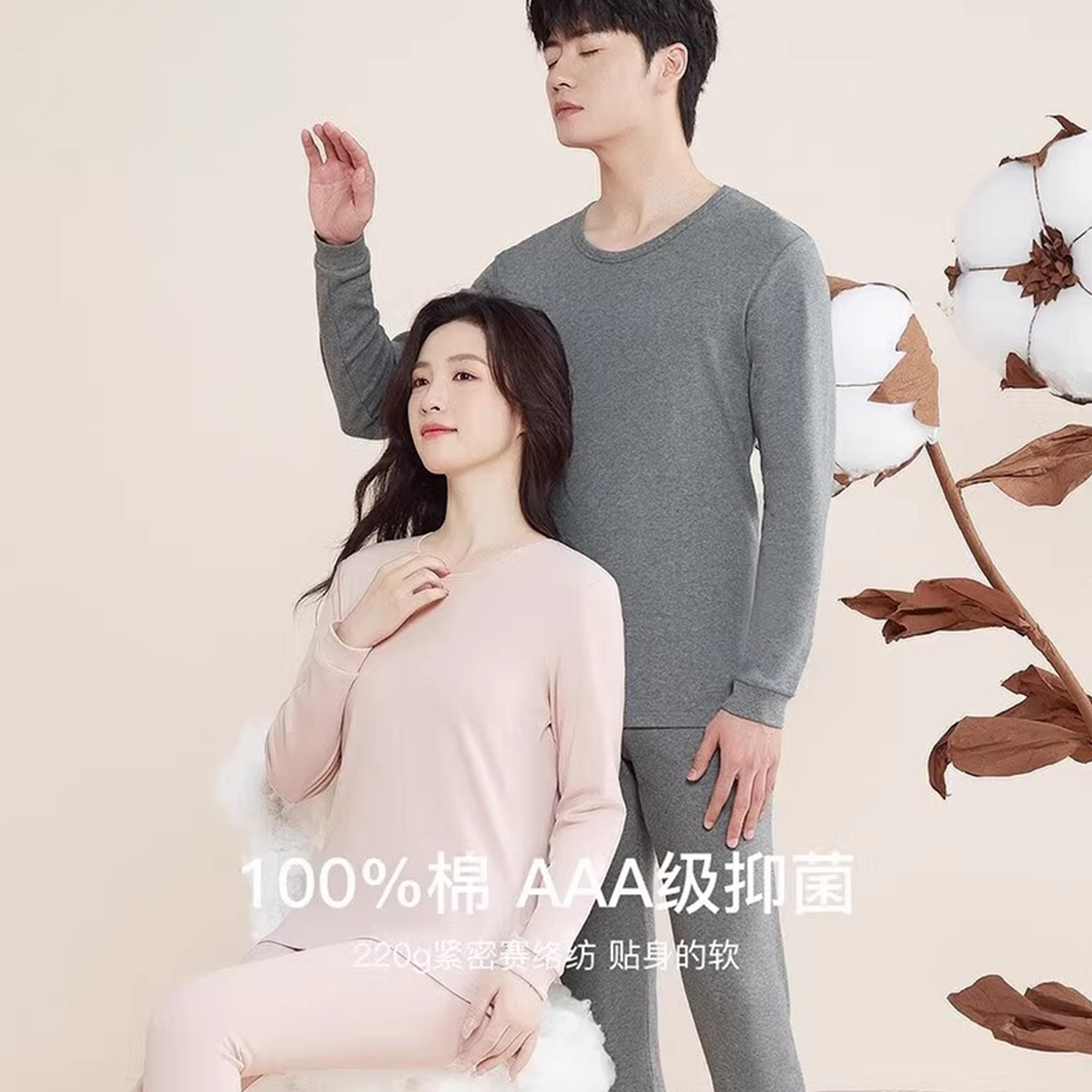 少女打底保暖内衣套装 红豆纯棉秋衣秋裤 男纯色100%棉抗菌棉毛衫