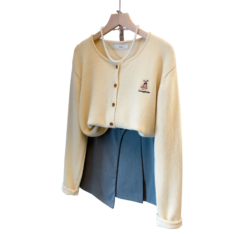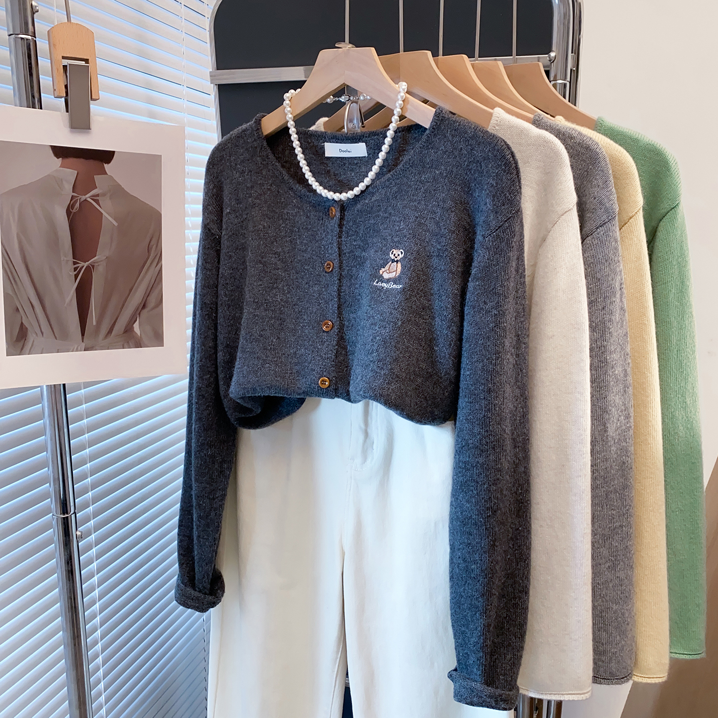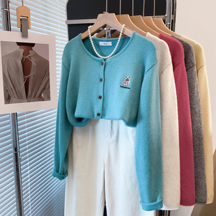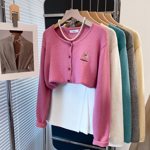 绣花圆领针织开衫 宽松慵懒风外穿上衣洋气毛衣外套 女2025秋冬新款