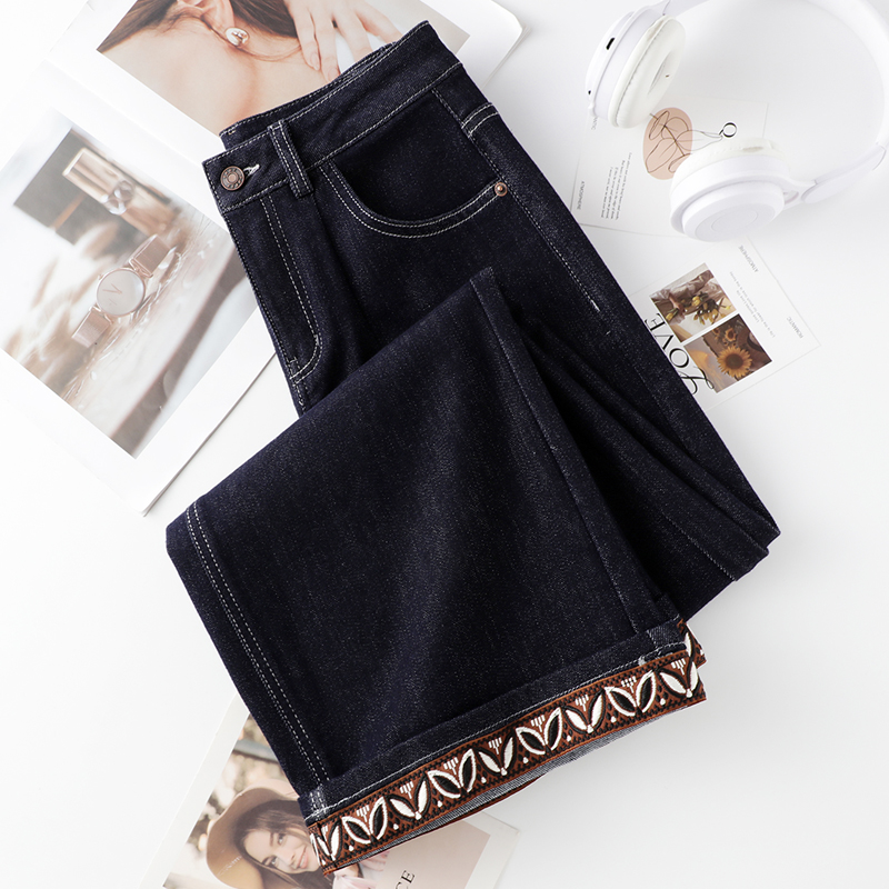 阔腿秋季 直筒宽松大码 新款 百搭休闲裤 子 复古牛仔裤 加肥加大裤 男士