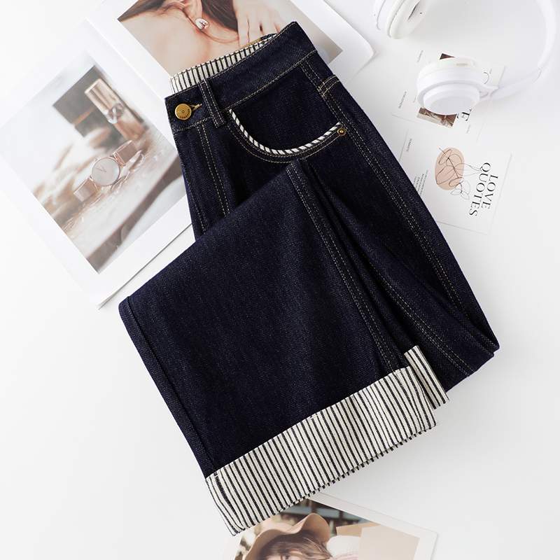 高腰宽松bf慵懒风直筒裤 2025新款 子 女秋季 韩妁雅复古阔腿牛仔裤