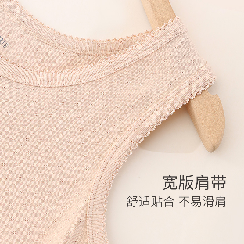 仕乐夏挑孔提花棉质蕾丝边宽肩背心薄高弹女内搭无袖 打底背心大码