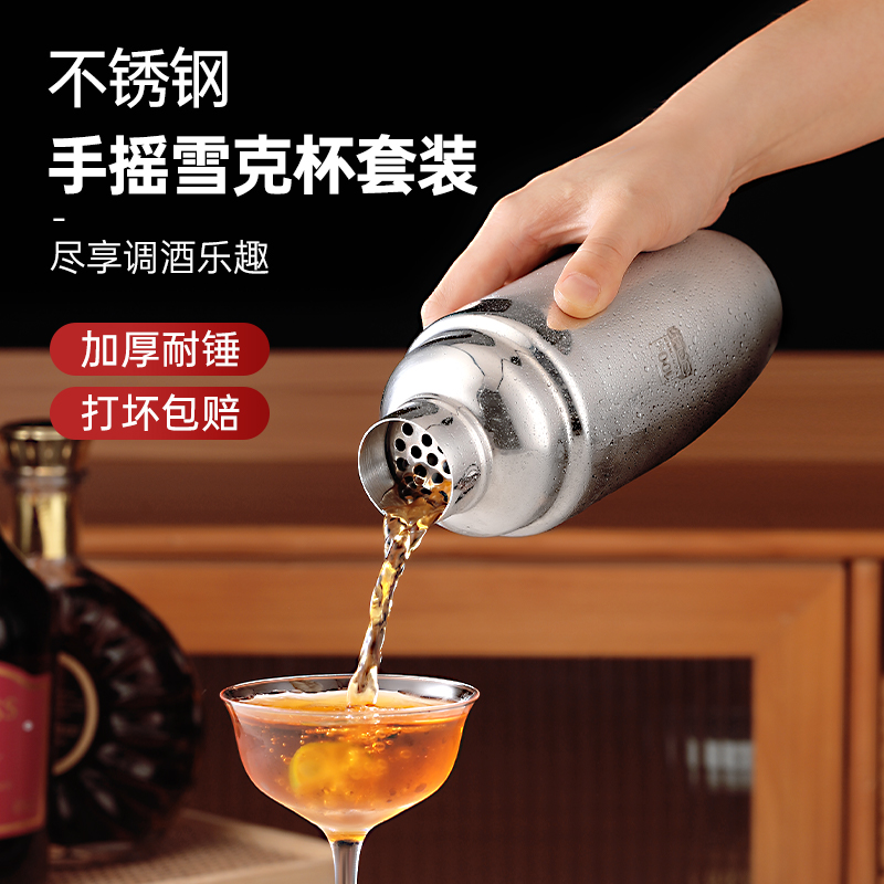 不锈钢调酒工具器雪克杯套装 一套shake杯柠檬茶鸡尾酒摇酒壶家用