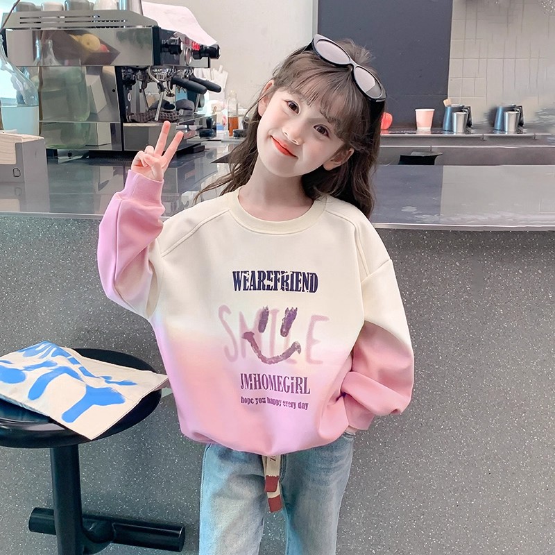 渐变衣服小女孩春秋款 网红炸街儿童秋季 上衣 卫衣2025新款 女童秋装