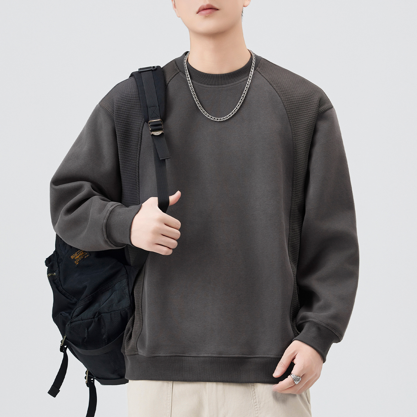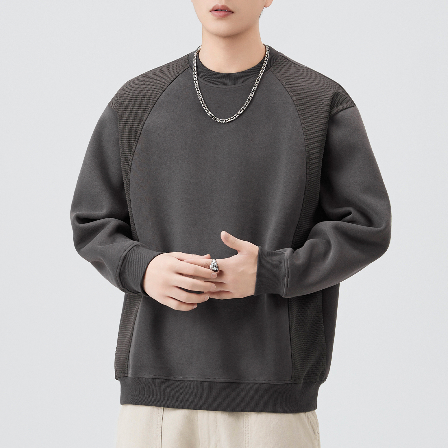 宽松休闲上衣 BODYDREAM老钱卫衣男肌理感圆领套头衫 明星同款