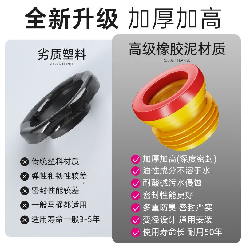 马桶法兰密封圈防臭防漏水垫圈加厚通用型下水移位坐便器胶圈配件