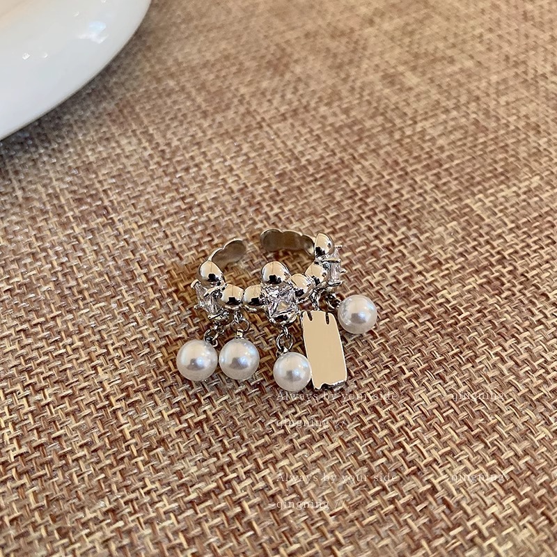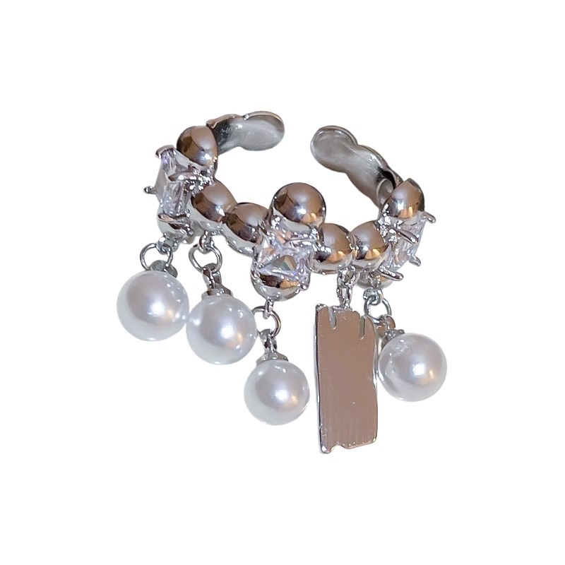 开口珍珠流苏戒指2025新款 小众设计高级感轻奢夸张食指指环女个性