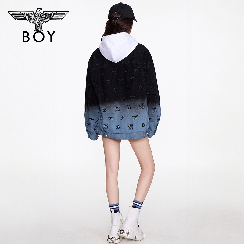 查尔斯桃心2025年新款 可拆卸连帽牛仔夹克男磨白单排扣多口袋外套