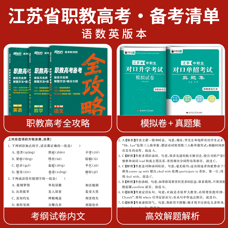 江苏省2026中职生职教高考对口单招升学真题集教材语数英总复习江苏考试复习资料模拟试卷提前高中高职大纲解题练习水平学业