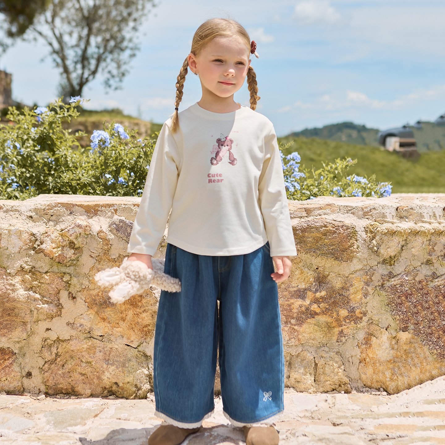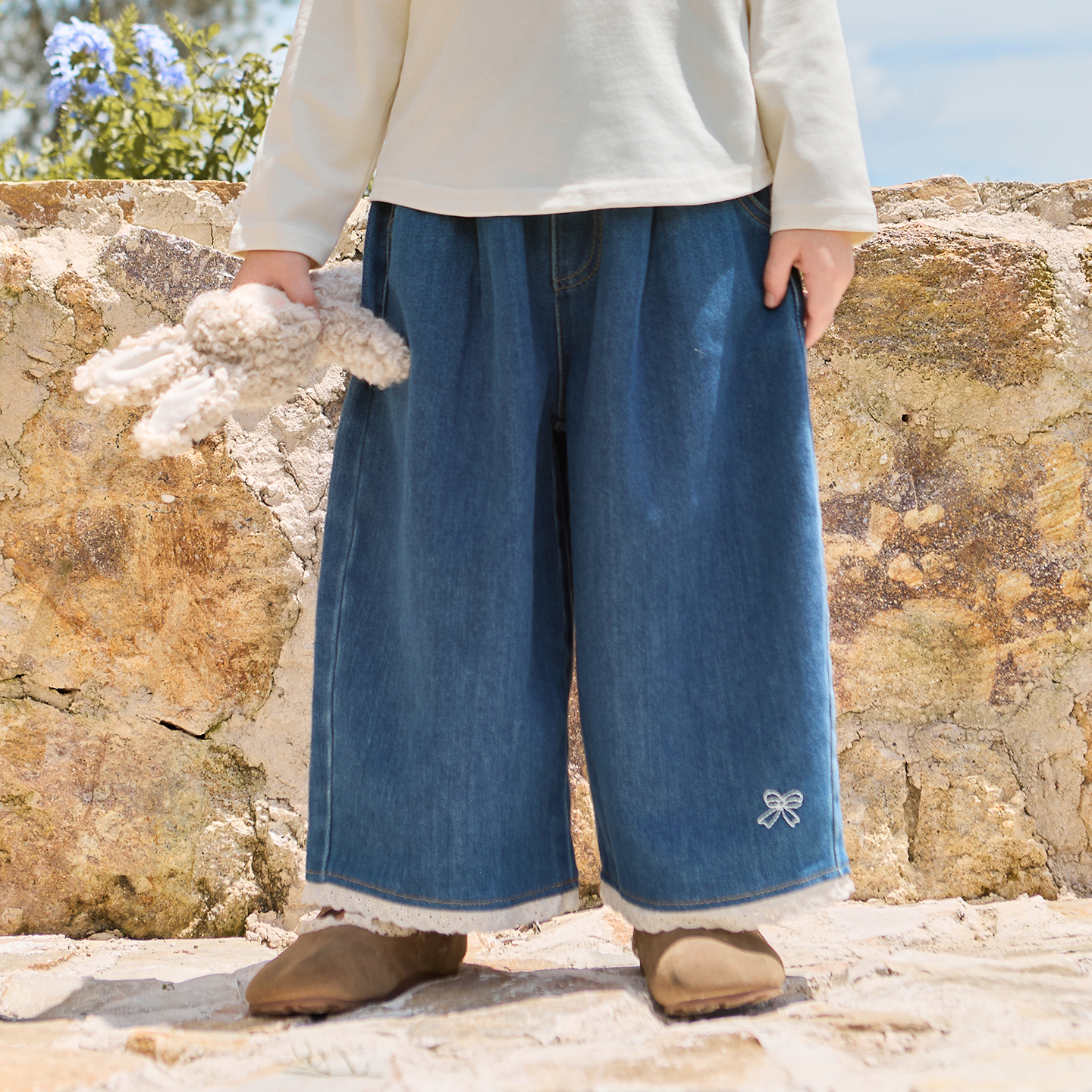 女童裤 儿童裤 子2025秋冬新款 牛仔裤 子 中大童直筒阔腿裤 植木童装