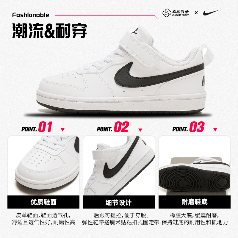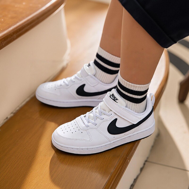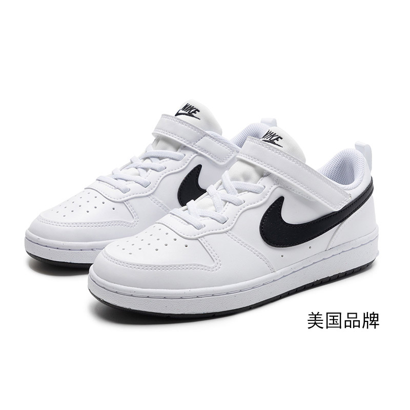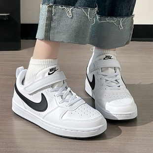 新款 童鞋 Nike耐克休闲鞋 COURT魔术贴黑白色轻便运动板鞋 自营