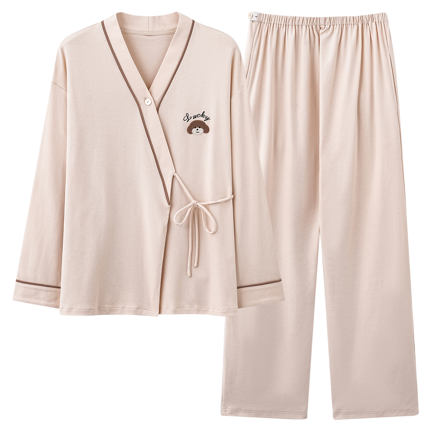 纯棉女士长袖 睡衣新款 秋款 家居服秋冬全棉大码 芬腾春秋季 套装 女款