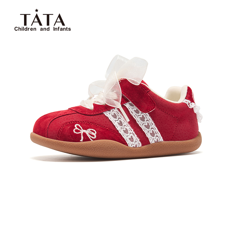 舒适缓震女童板鞋 TATA童鞋 芭蕾风休闲百搭童鞋 2025爆款 儿童德训鞋