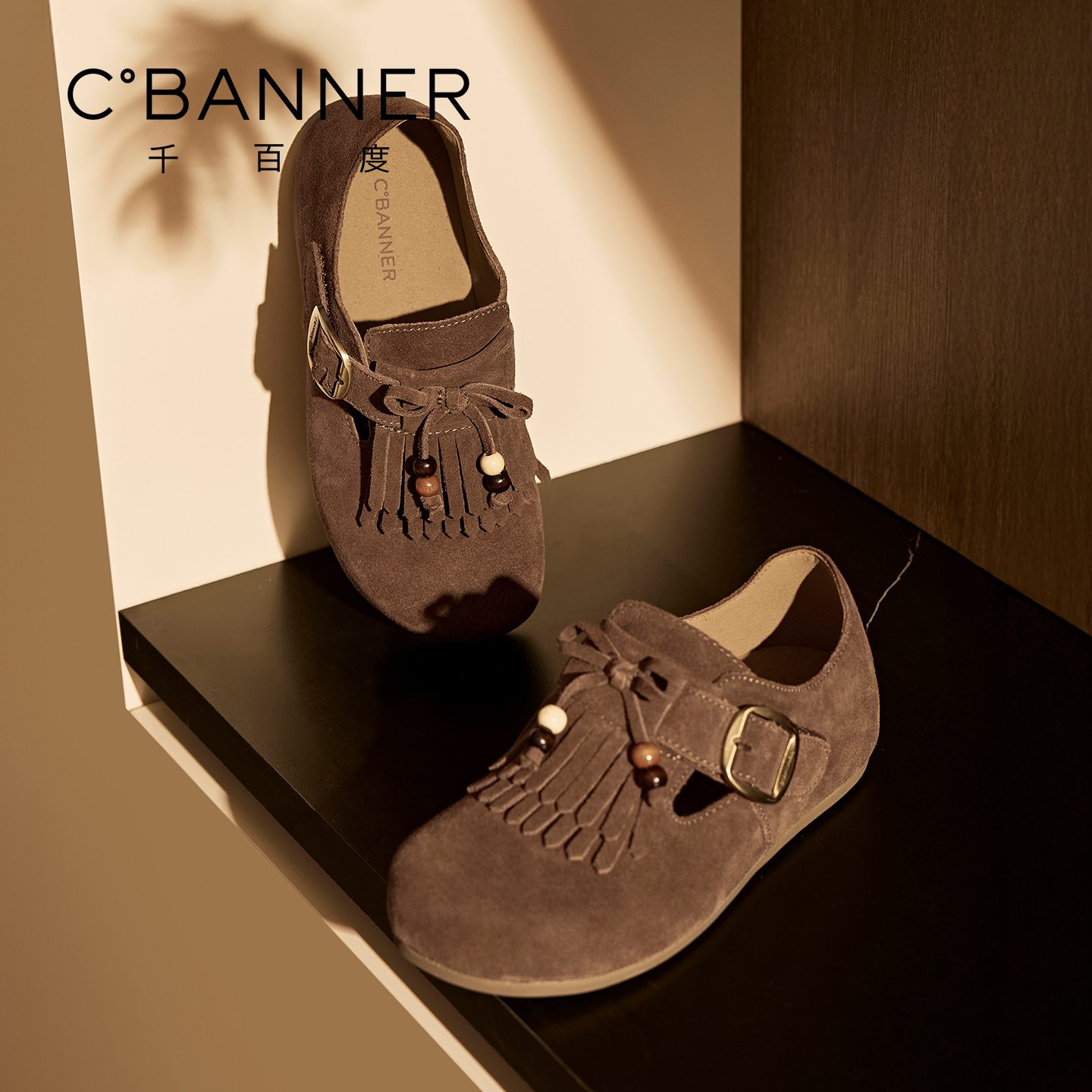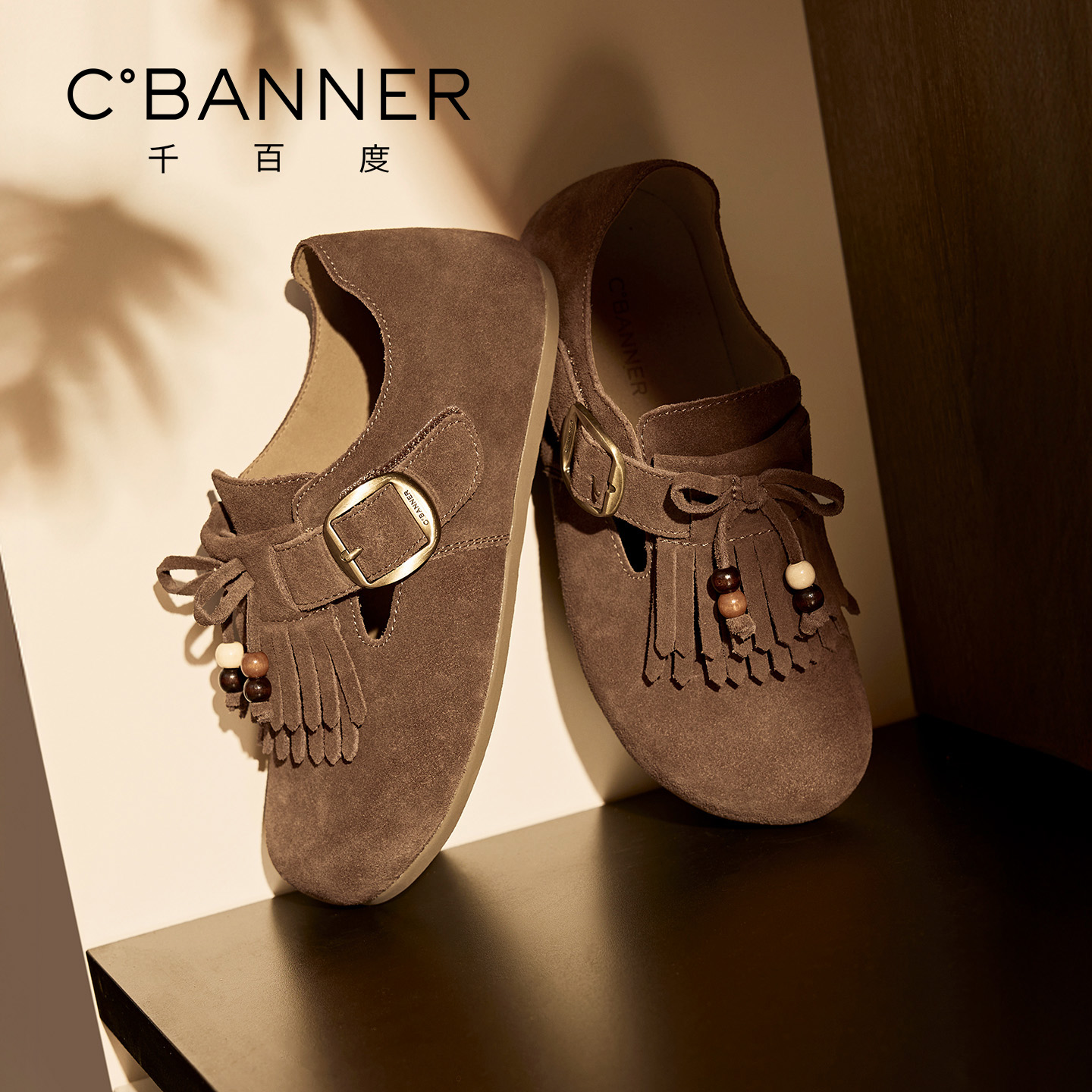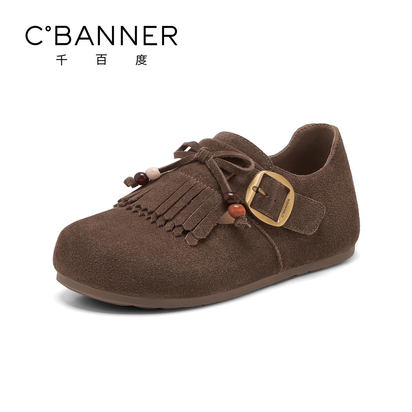 一脚蹬乐福鞋 千百度真皮流苏全包勃肯女鞋 复古单鞋 新款 2025秋季