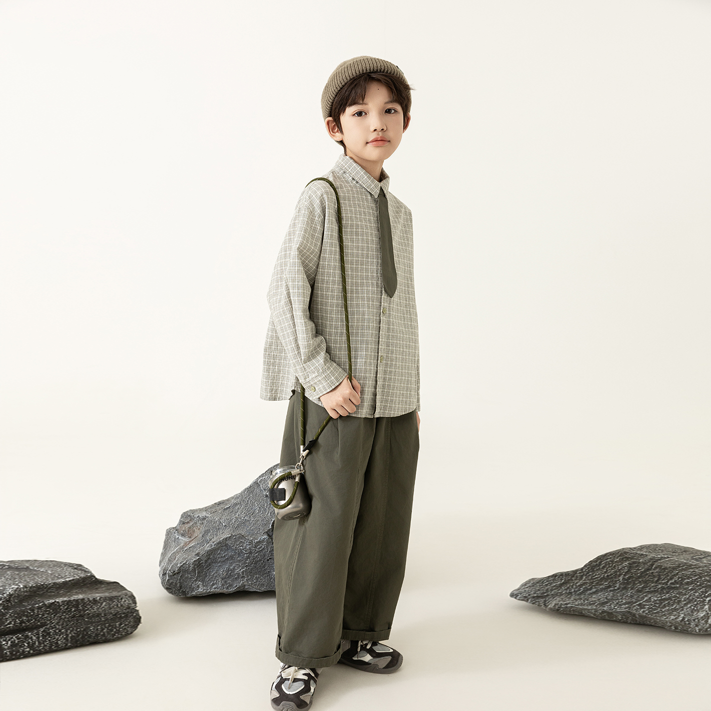 纯棉大童宝宝格子衬衣翻领开衫 儿童衬衫 新款 oddtails男童2025秋季