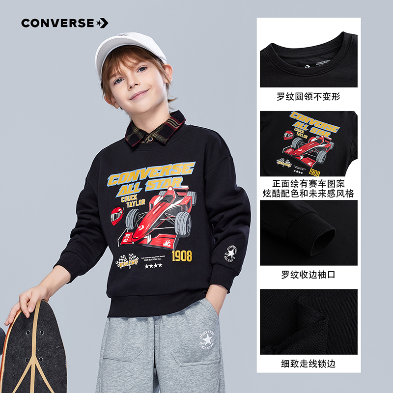 新款 男童卫衣2025秋季 匡威童装 复古学院风潮流打底衫 赛车图案