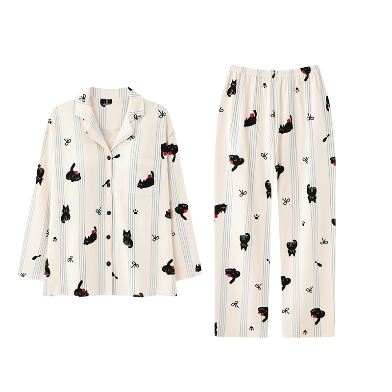 猫人纯棉睡衣女士春秋季 带胸垫卡通动漫可爱外穿家居服 2025年新款