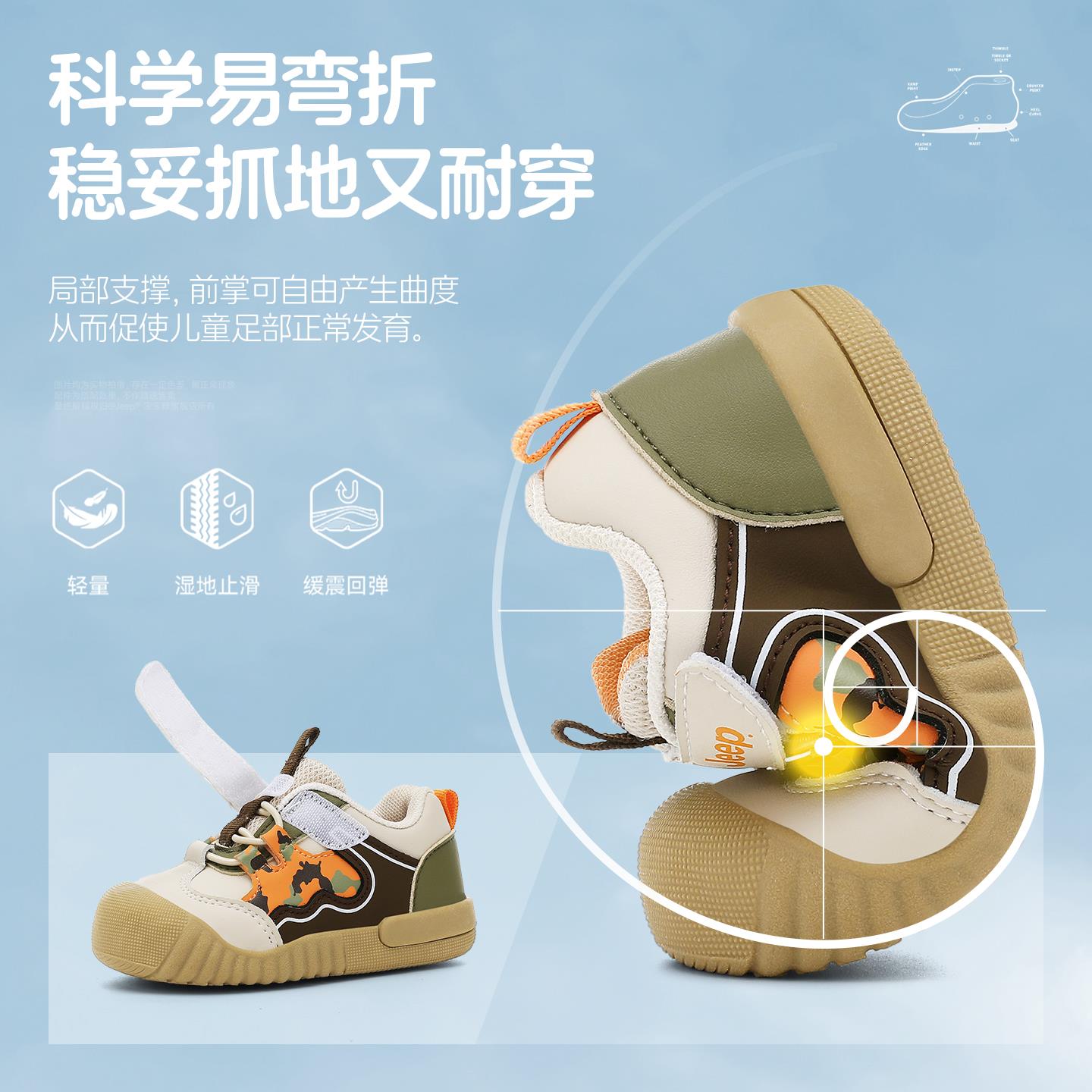 子秋季 机能休闲鞋 新款 男童运动鞋 软底轻便婴儿学步板鞋 jeep宝宝鞋