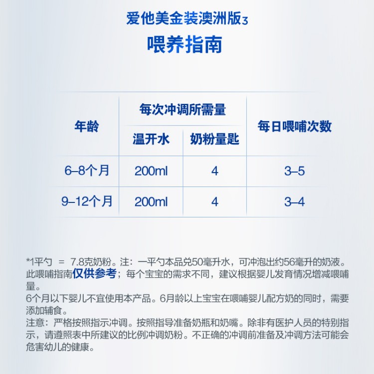 Aptamil爱他美澳洲原罐进口新西兰金装 12个月婴幼儿奶粉900g 2段6