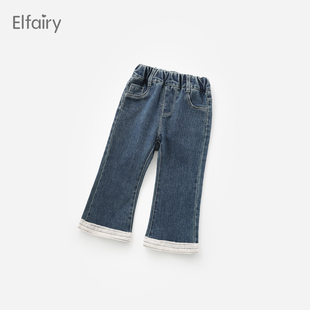 宝宝休闲长裤 Elfairy女童软牛仔裤 子2025新款 儿童微喇裤 洋气 秋装