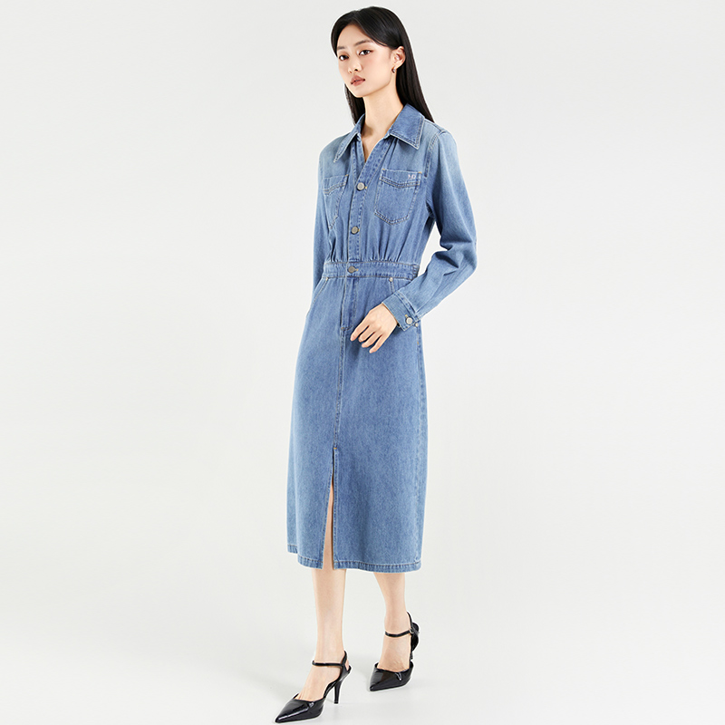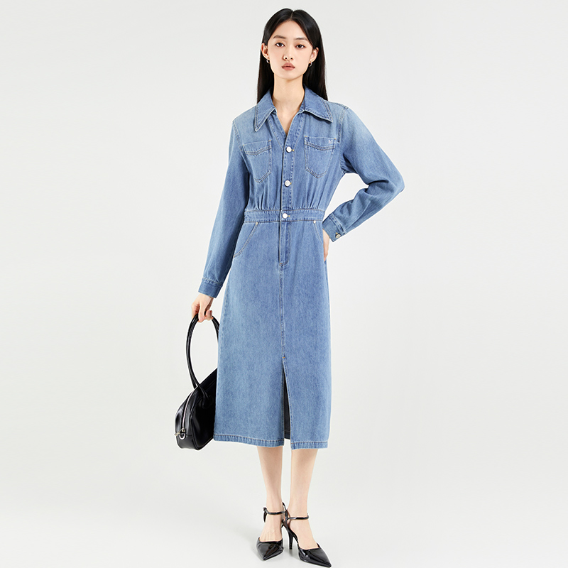 收腰衬衫 傲丝度长袖 时尚 新款 裙小个子休闲连衣裙子 牛仔裙2025秋季