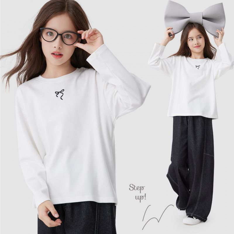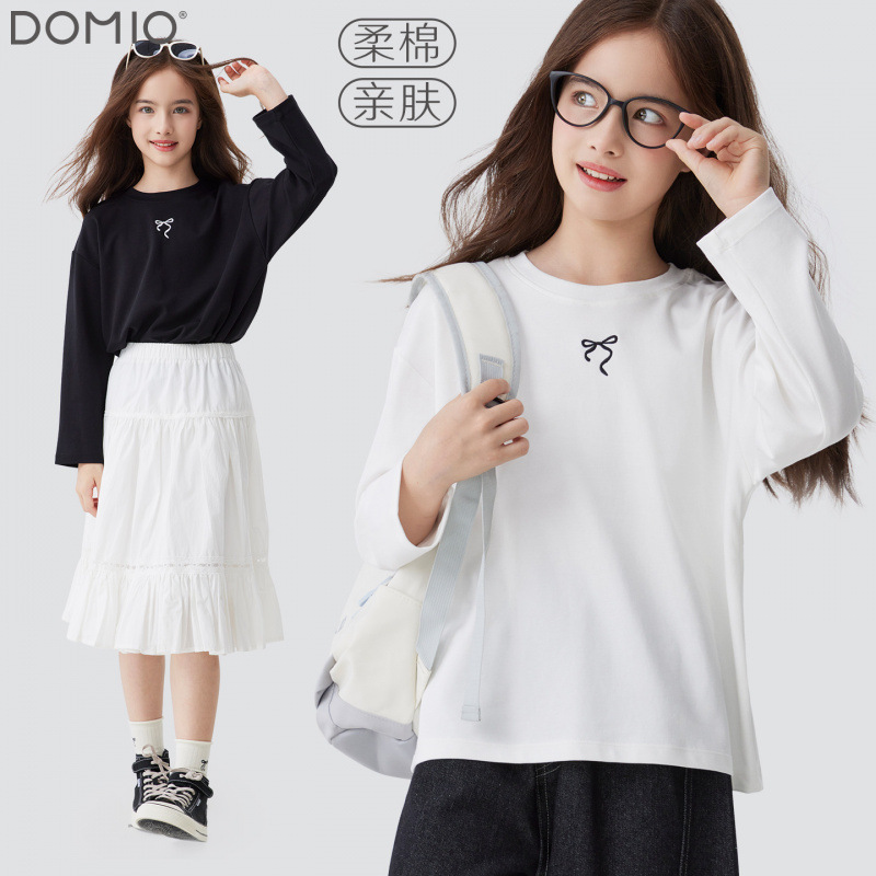 中大童洋气白色上衣青少年春秋装 女童长袖 儿童打底衫 新款 T恤秋季