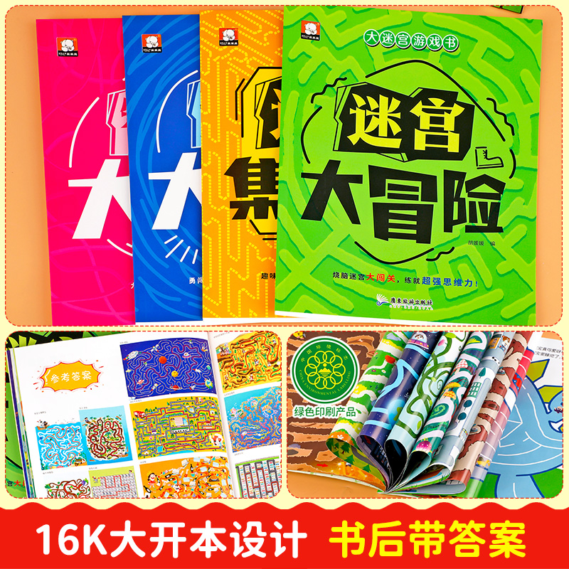 大迷宫游戏书全套4册儿童迷宫益智专注力训练书5 4岁幼儿思维逻辑注意力训练书籍智力开发视觉大迷宫游戏 6岁走迷宫绘本大冒险书3