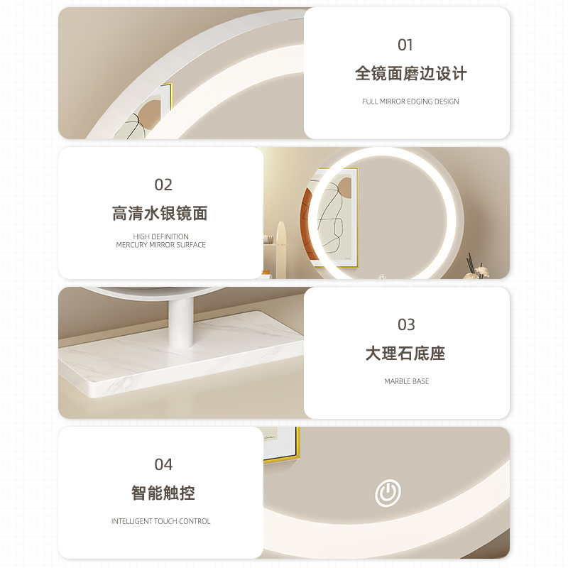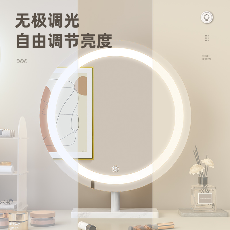 led化妆镜台式 梳妆台高端镜子 桌面带灯智能轻奢高级卧室2025新款