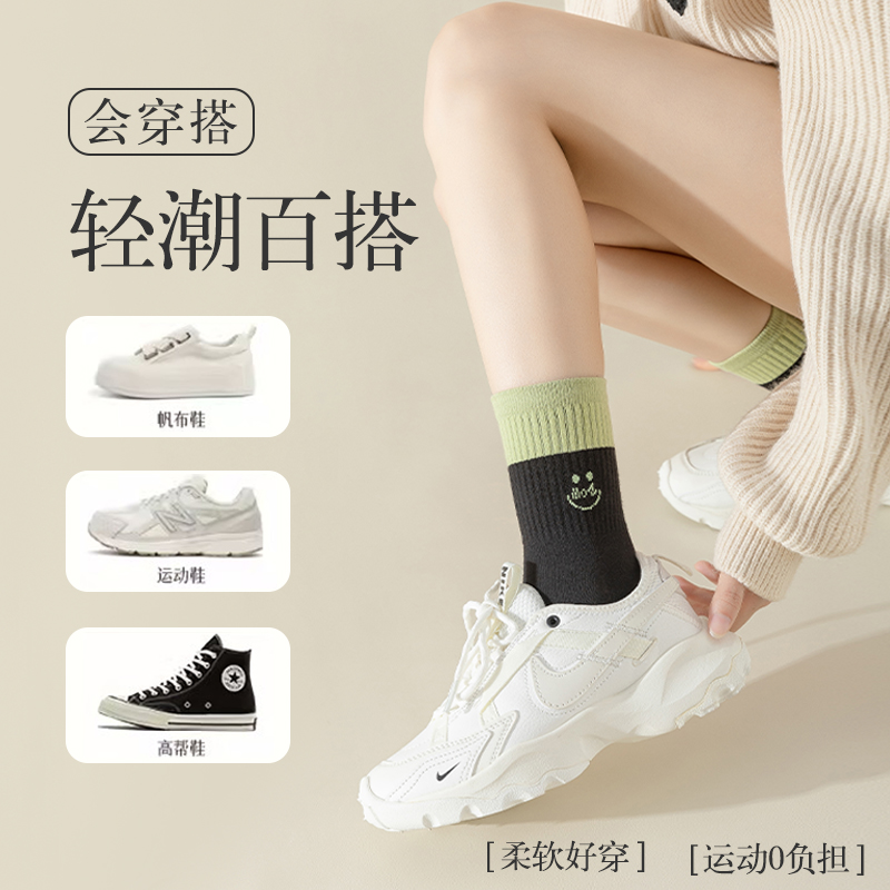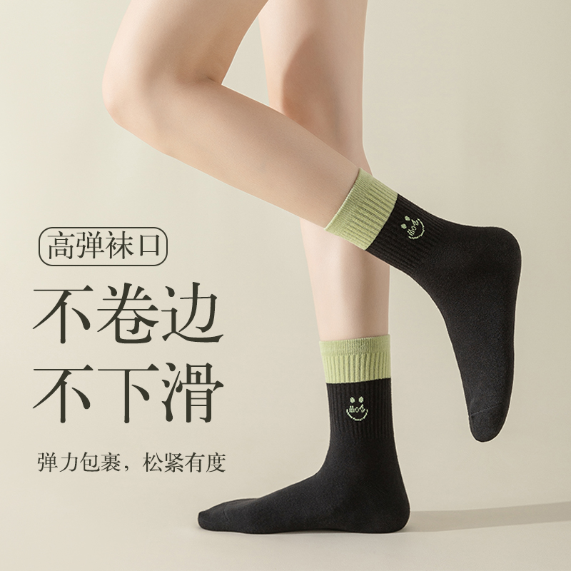 棉伙棉伴海藻袜舒适抗菌防臭男女商务运动纯色裸感中筒袜