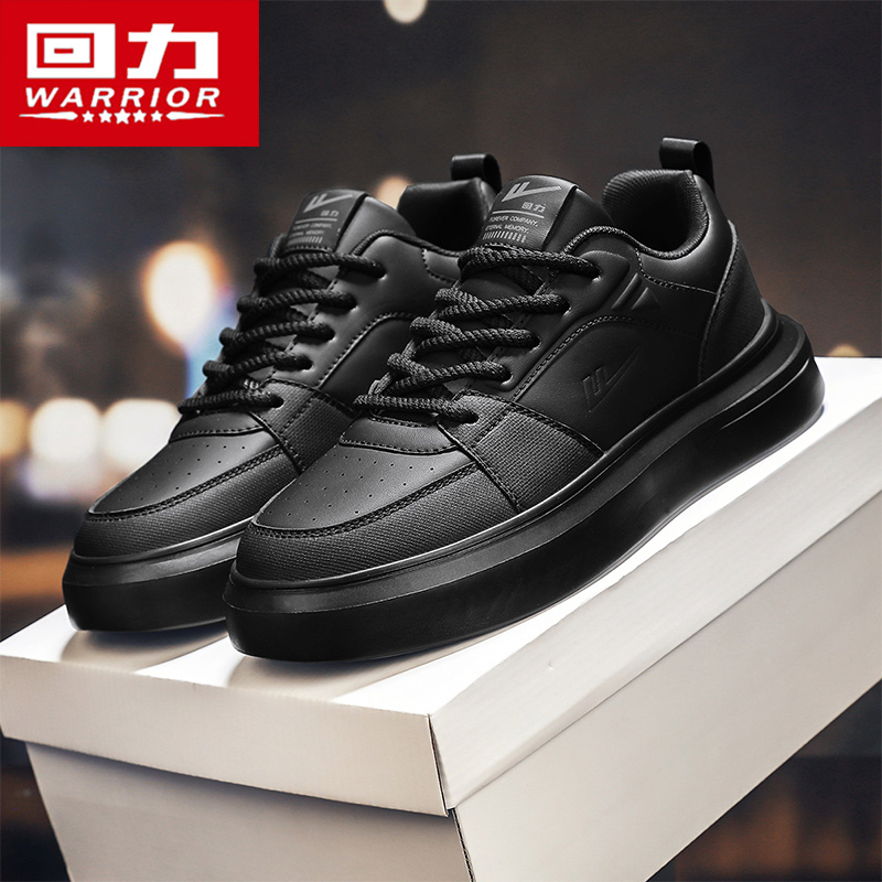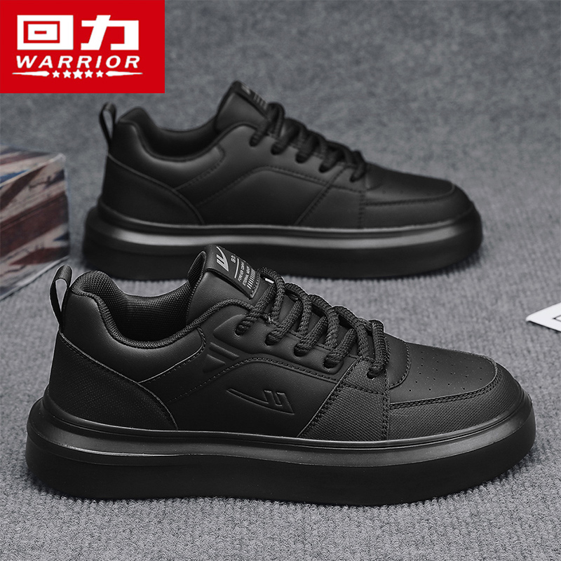 工作上班防滑防水潮鞋 回力黑色男鞋 运动厨房皮鞋 休闲纯黑板鞋 秋季