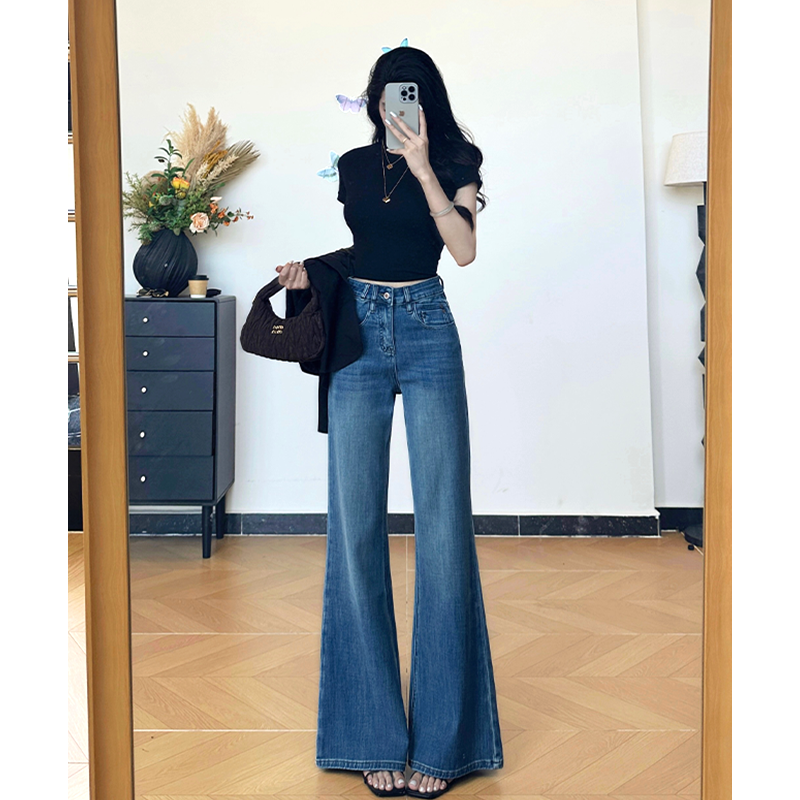 女2025气质百搭喇叭裤 乔栈秋冬新款 加绒高腰显瘦不贴腿微喇牛仔裤