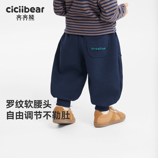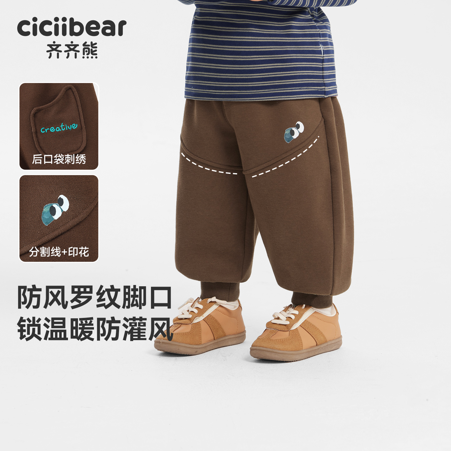 子加绒加厚冬款 齐齐熊男童裤 宝宝卫裤 长裤 女 2025新款 450G一体绒