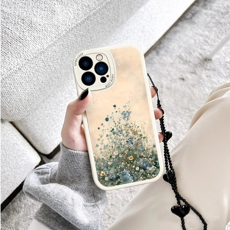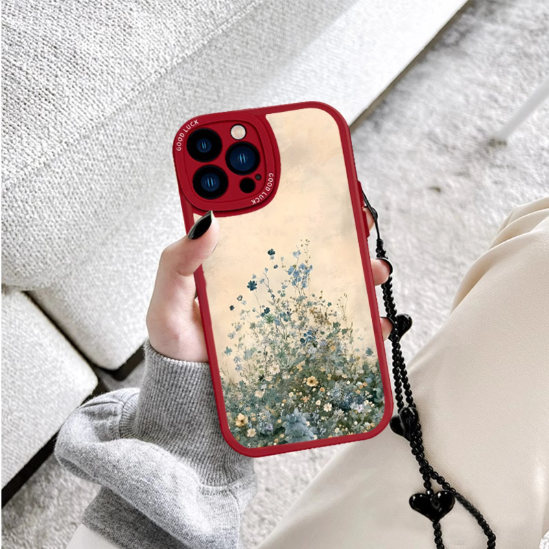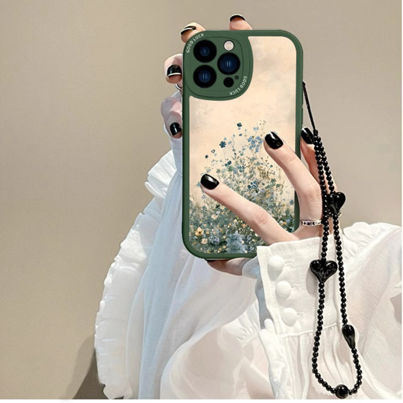 油画碎花适用苹果17promax手机壳新款 16女iPhone15保护套高级感ip14带挂绳13高端12复古硅胶11全包xs防摔软壳