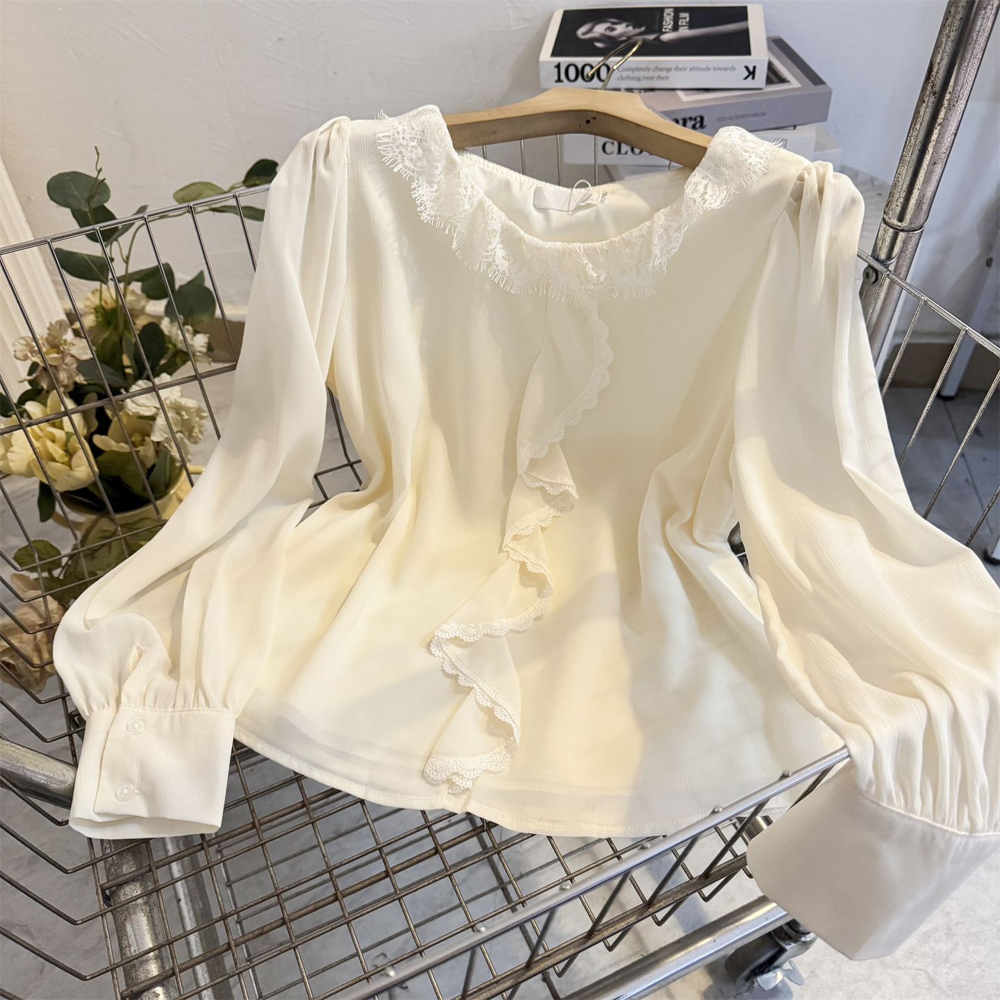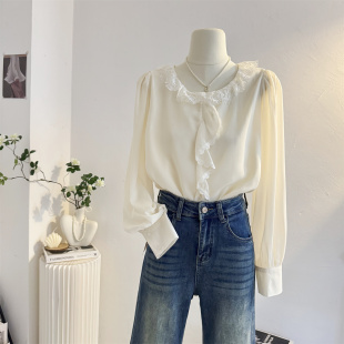 春秋新款 女士长袖 设计感气质衬衣上衣 子衬衫 betu百图复古英伦风格