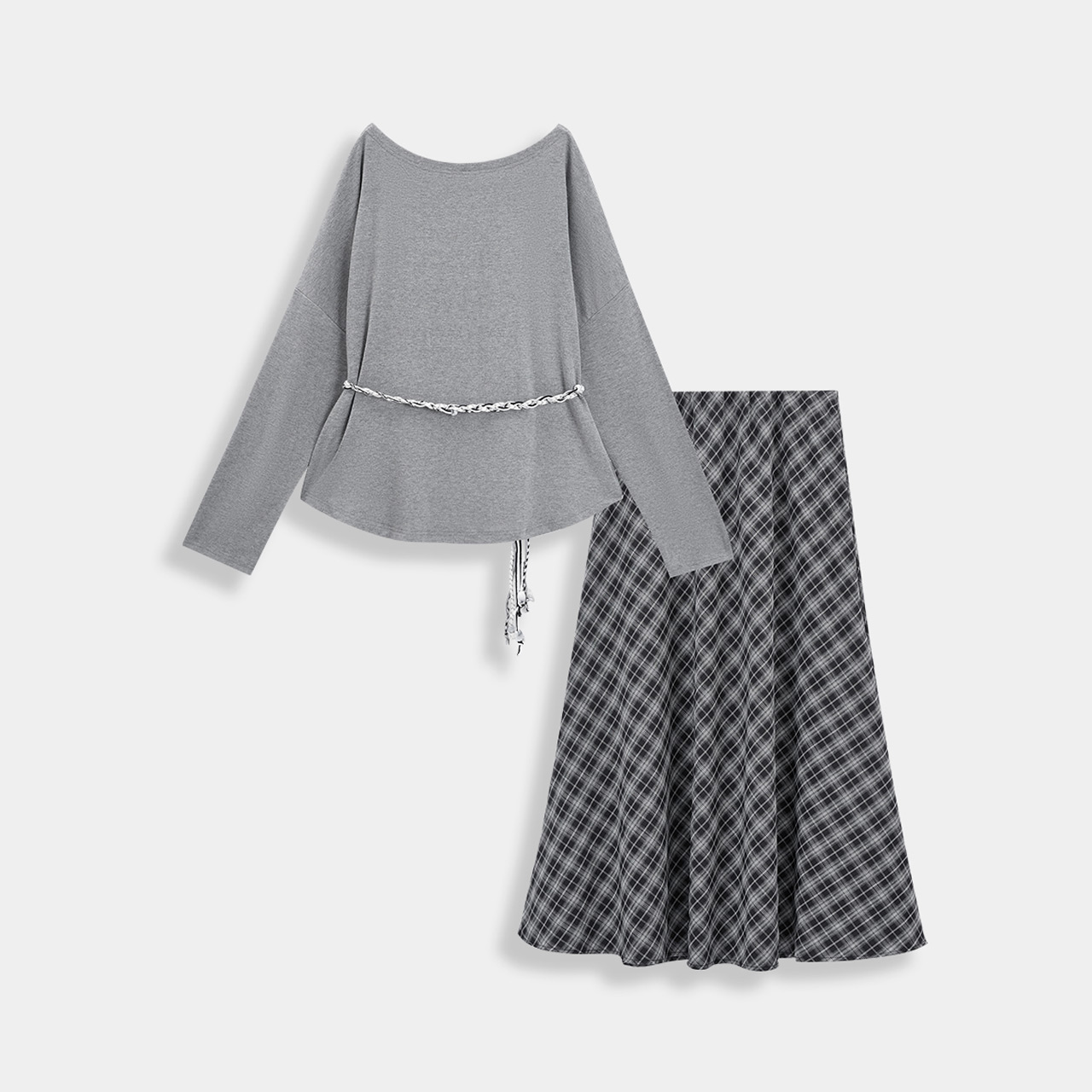 女装 大码 2025秋季 新款 小女人气质通勤上下套裙 IEF 韩版 爱依服