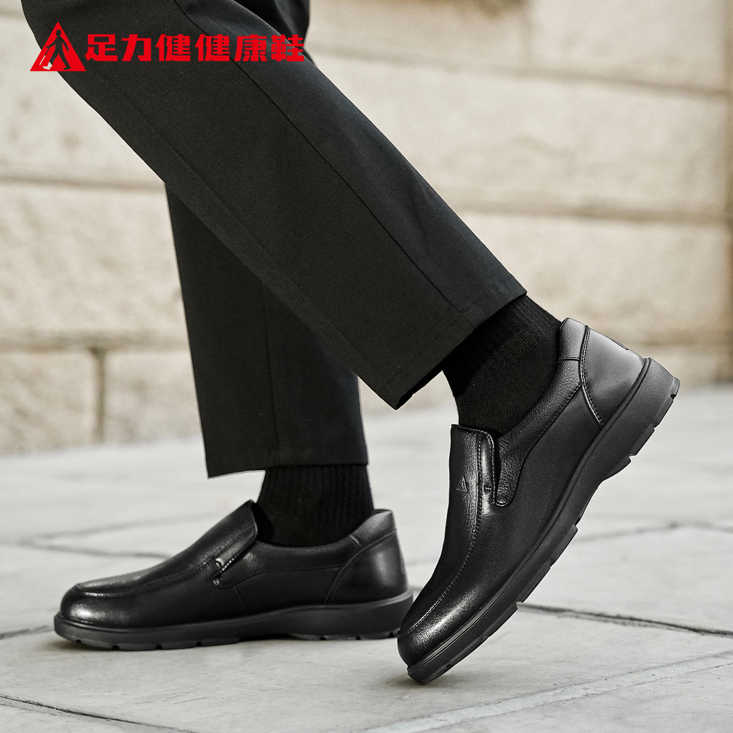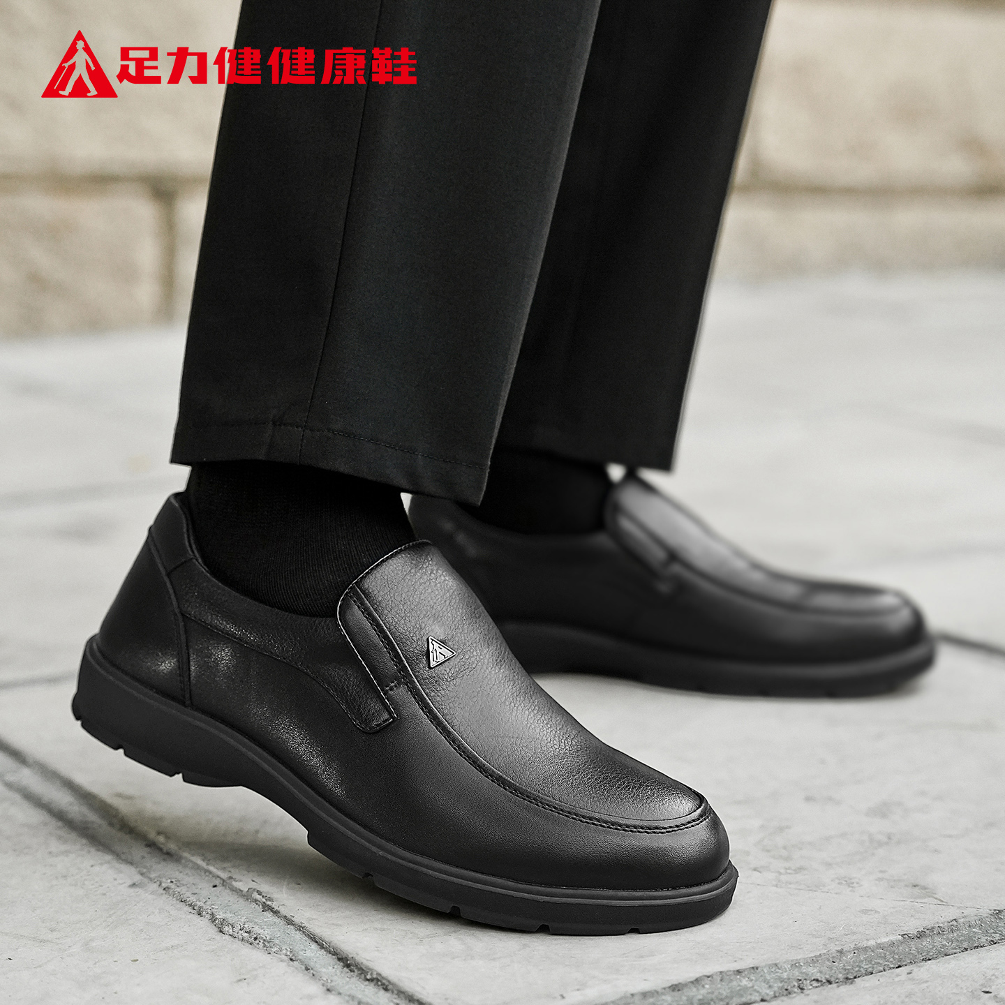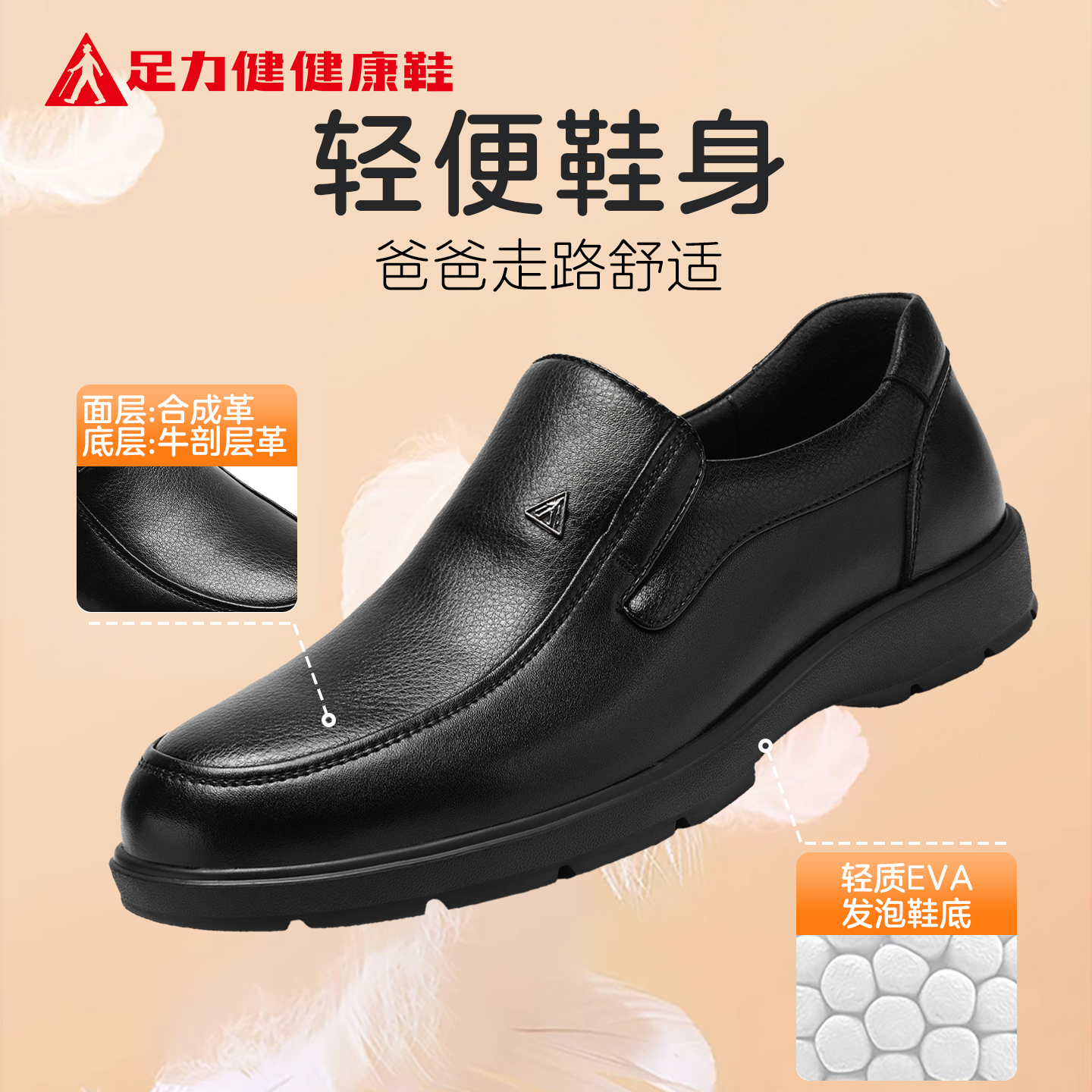 父亲中年爸爸鞋 男士 子软底一脚蹬 真皮商务休闲透气皮鞋 意尔康男鞋