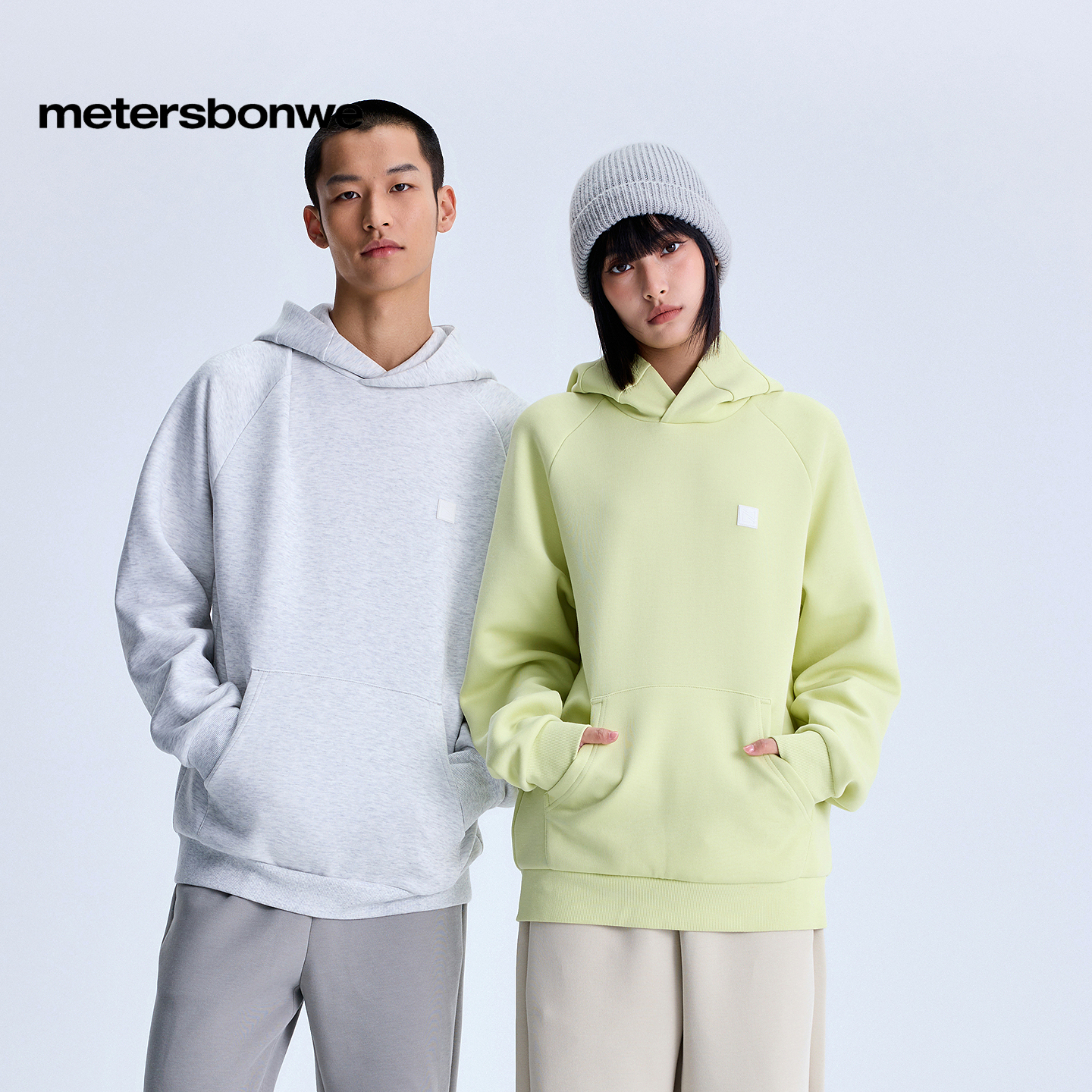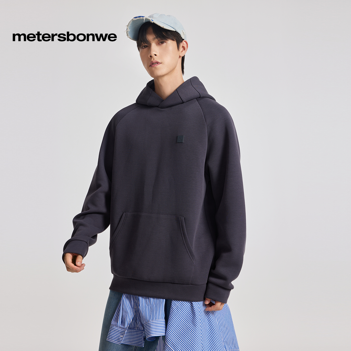 上衣纯色宽松情侣上衣 美式 美特斯邦威卫衣男女同款 秋新连帽时尚