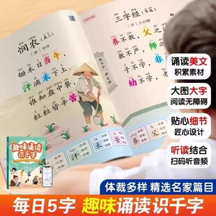幼小衔接趣味诵读识千字幼儿园每日晨读阅读识字绘本儿童早教启蒙大字彩图注音版 大班学前班儿童儿歌读唐诗古诗词朗诵学汉字认字书