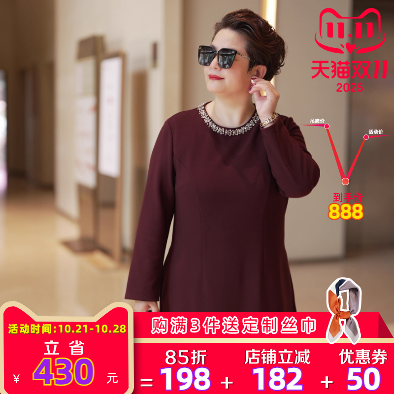 气质礼服收腰显瘦水钻领连衣裙0351 2025春秋新款 向红同学大码 女装