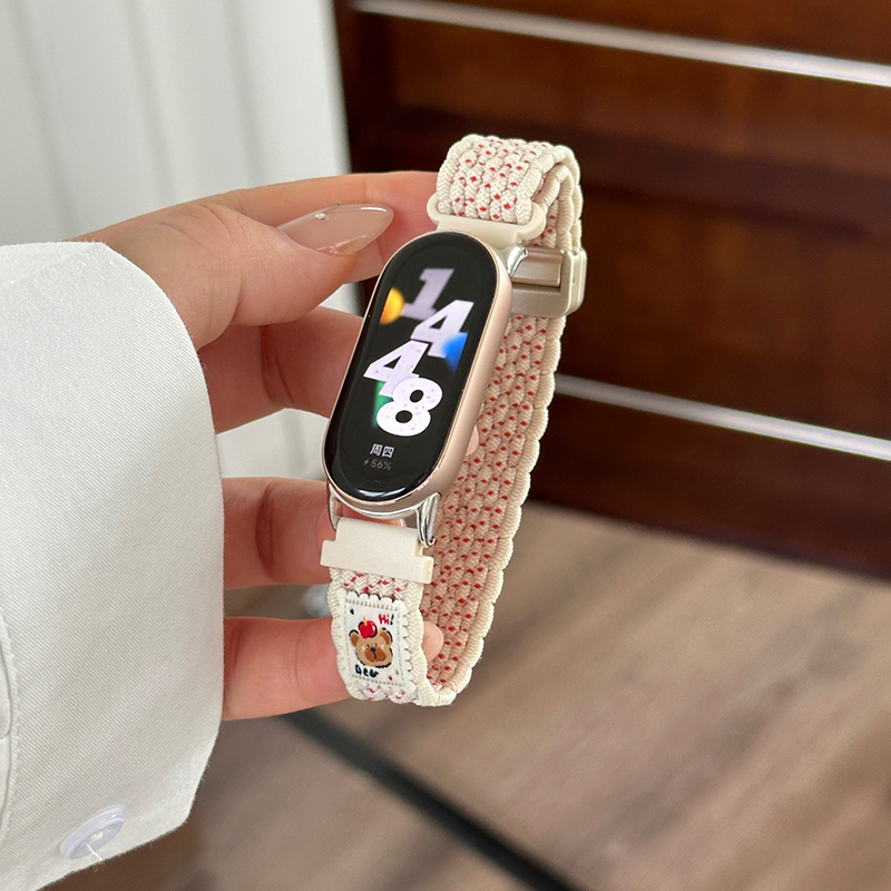 透气女款 苹果小熊适用于小米手环10表带9尼龙编织磁吸新款 运动智能替换腕带春夏季 6NFC版 透气 十代可爱8高级7